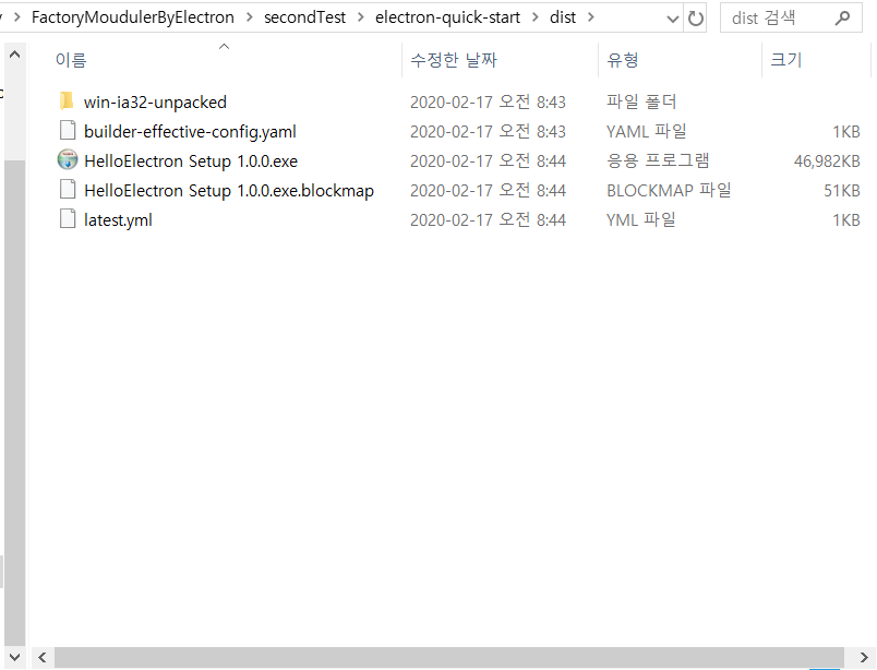 4. dist 폴더에 설치 파일 생성